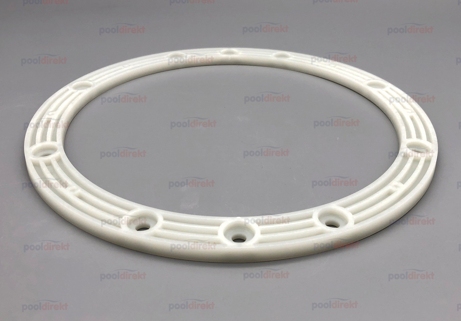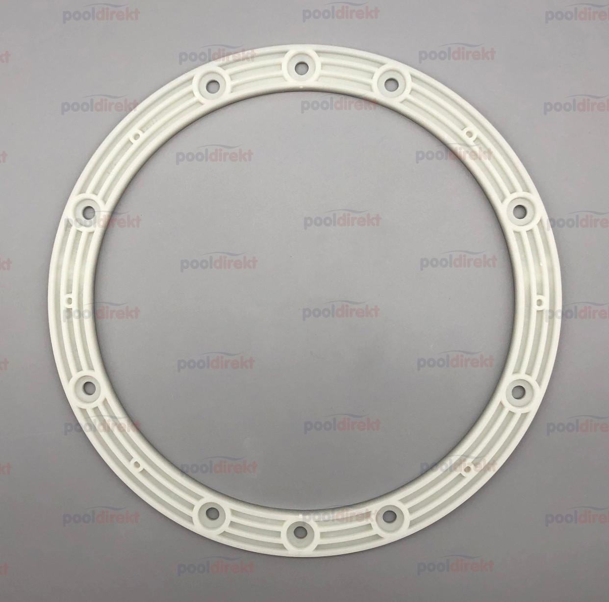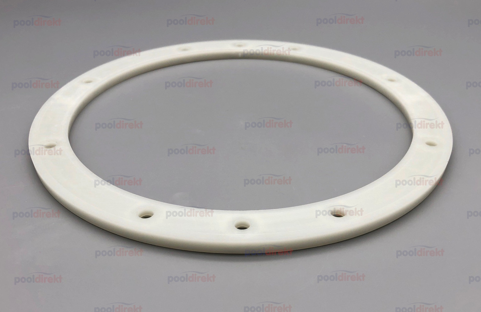 Dichtung zu Flansch für Scheinwerfer Neptun, zum Aufkleben auf den Einbautopf Art.Nr. 501042 vor Folierung des Schwimmbeckens.  Außendurchmesser: ca. 254 mm Innendurchmesser: ca. 210 mm Lochkreis: ca. 232 mm Dicke: ca. 2 mm
