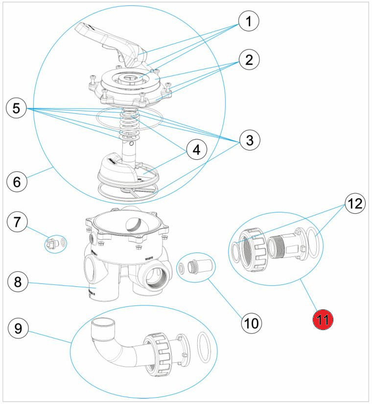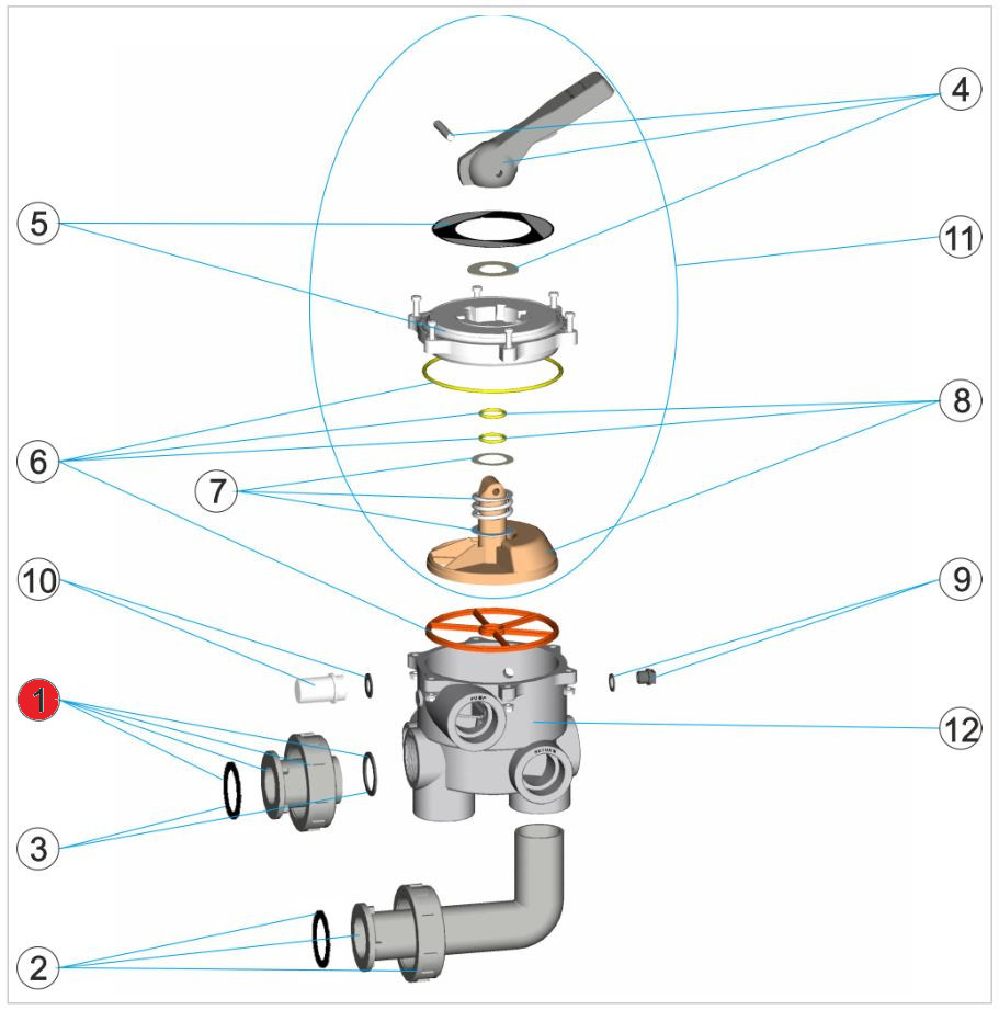 Ventilanschluss-Stück gerade zu Astral Side Mount 6-Wege-Ventil schwarz als Ersatzteil für den oberen Anschluss zum Filterkessel.