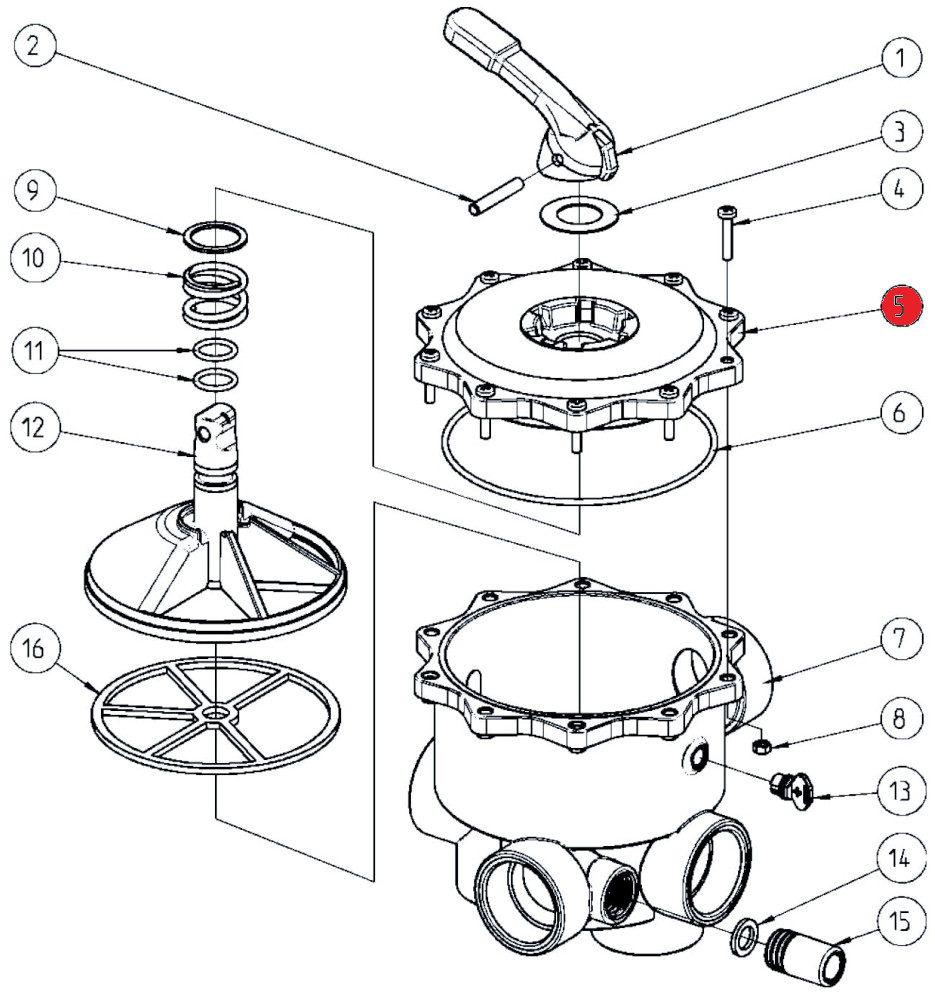 Deckel für 6-Wege-Ventil Praher 2" Ocean V6 alte Version (Sterndichtung liegt im Unterteil) aus ABS als Ersatzteil.