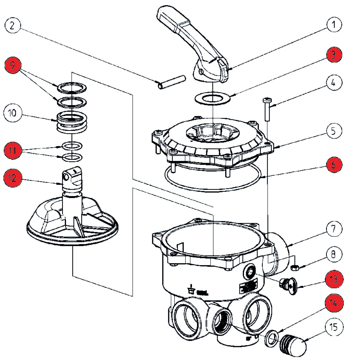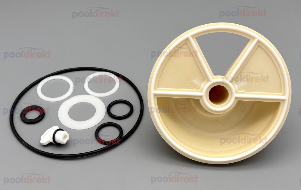 Dichtsatz für Praher 6-Wege-Ventil 1 1/2" Ocean V6 neue Version (Sterndichtung am Stempel/Teller fix montiert) als Ersatzteil-Paket bestehend aus:
