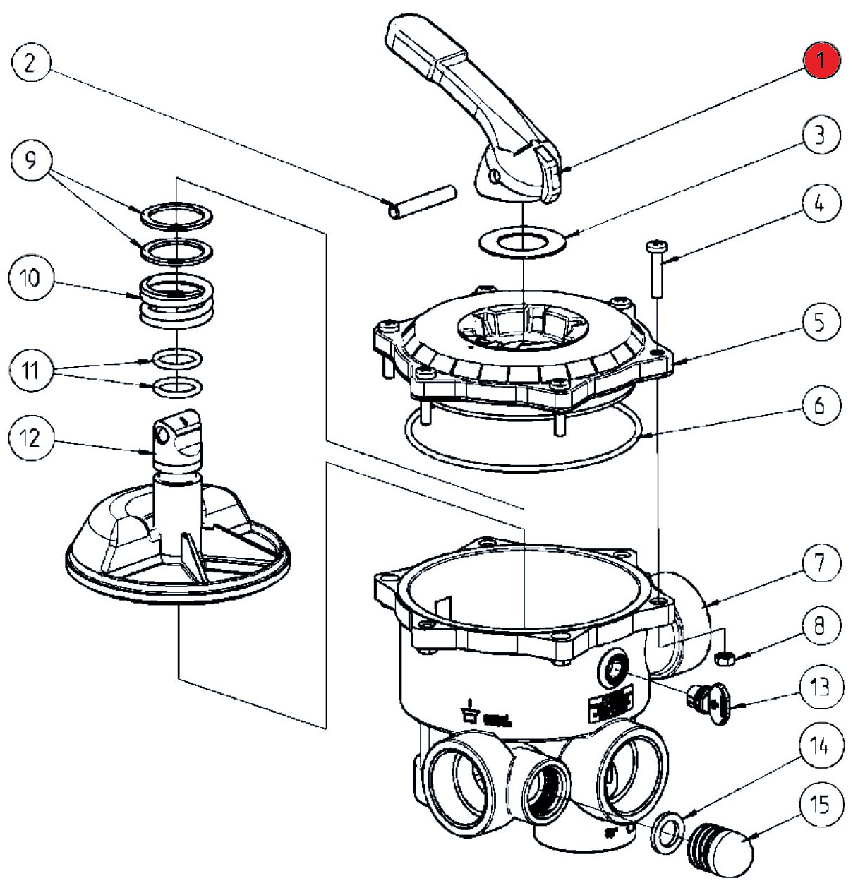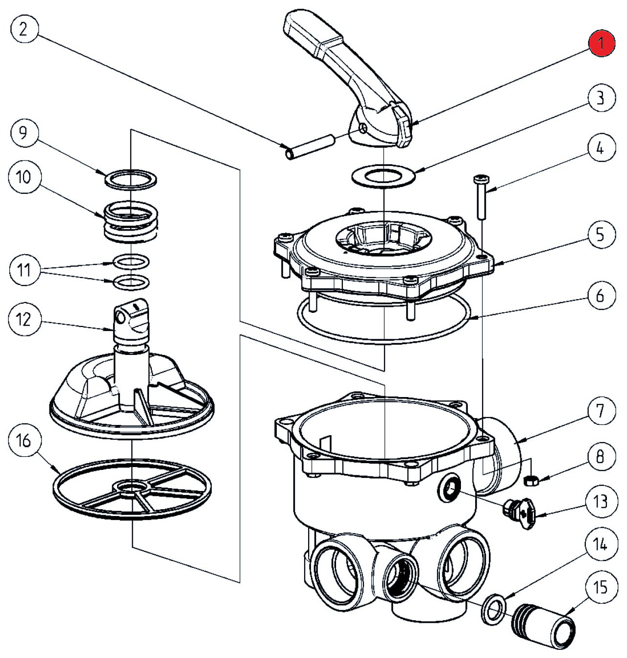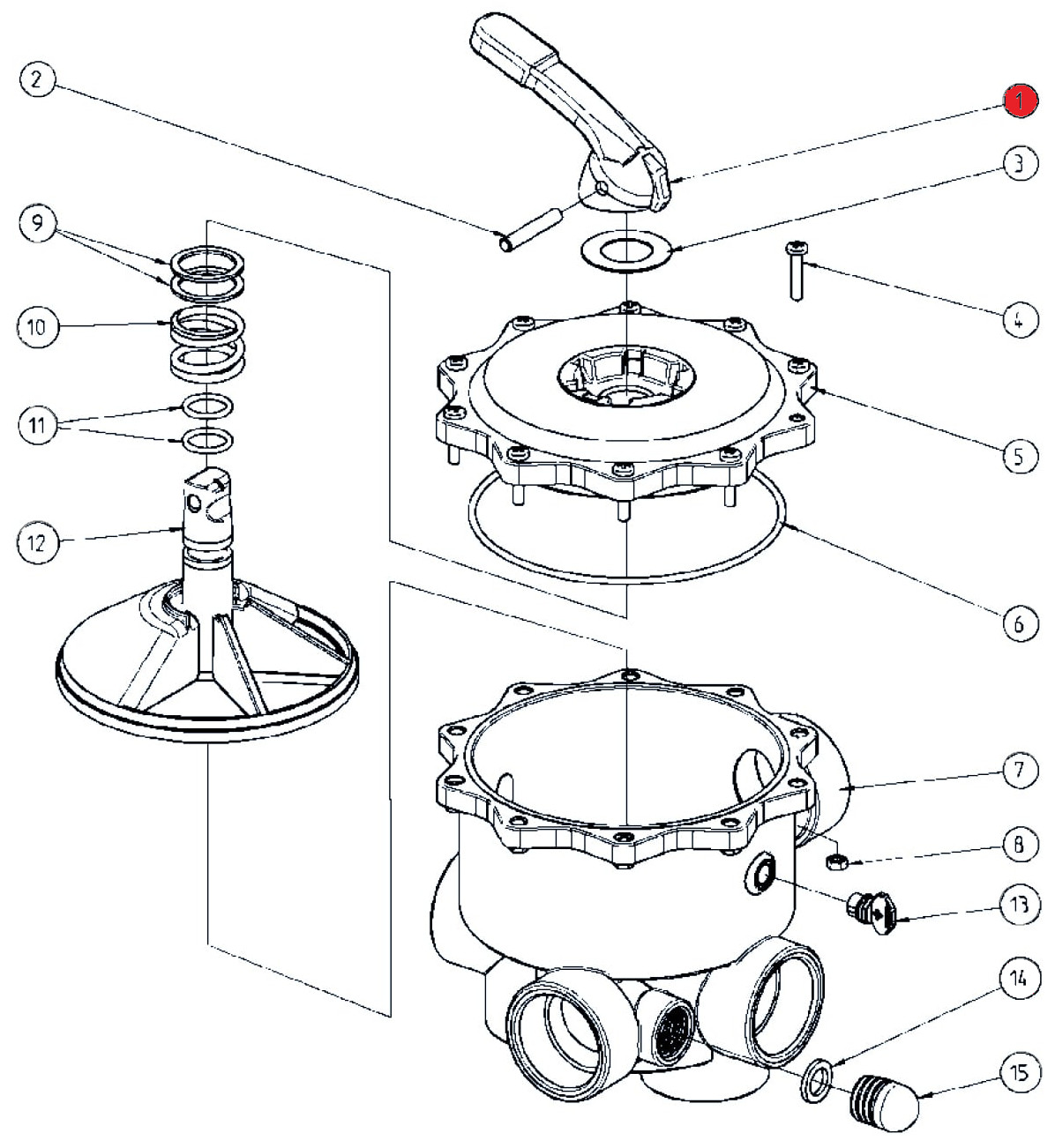 Griff/Hebel aus ABS für Praher 6-Wege-Ventile 1 1/2" und 2" Ocean V6.