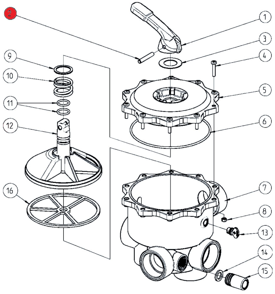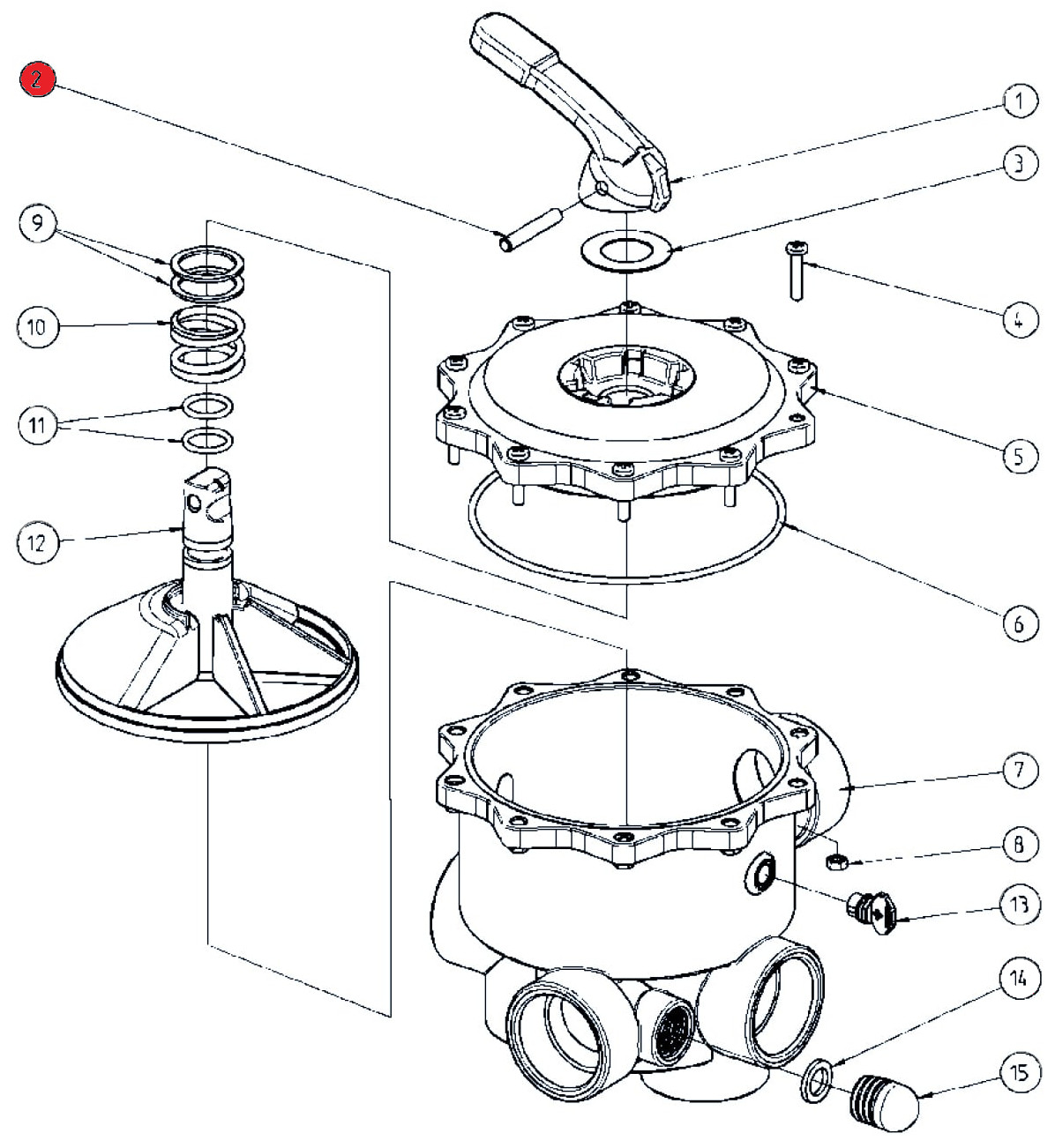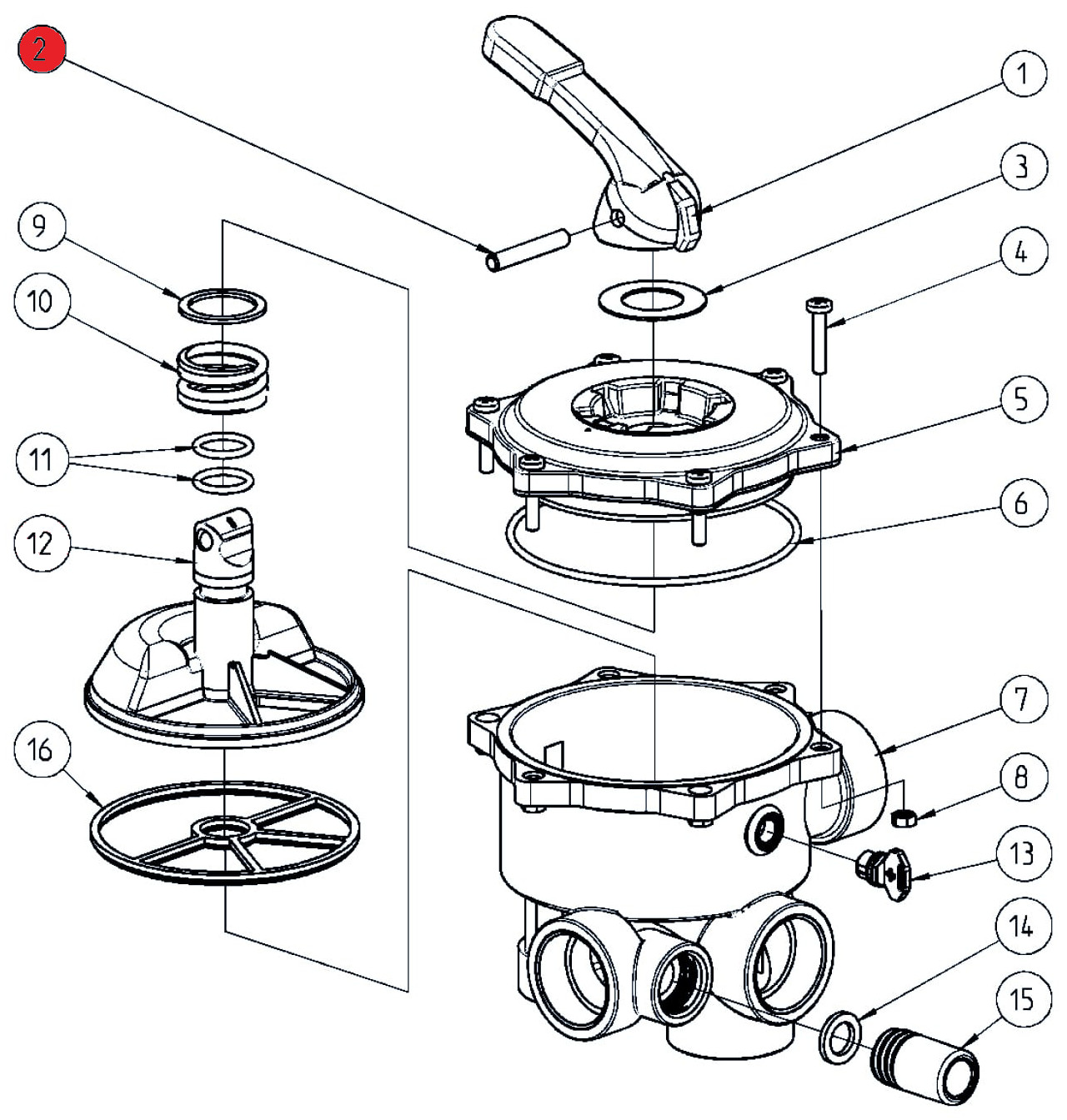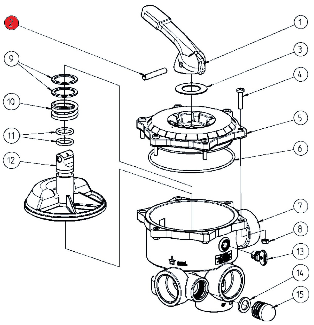 Bolzen für Griff, passend für Praher 6-Wege-Ventile 1 1/2" und 2" Ocean V6 alte und neue Version (Sterndichtung lose oder am Stempel/Teller fix montiert).