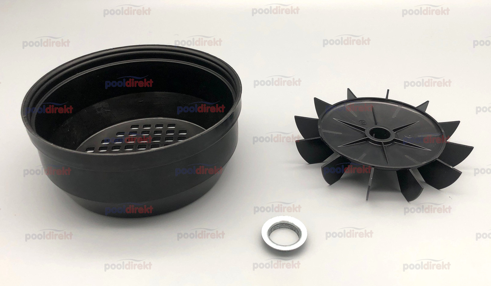 Ventilator mit Deckel als Ersatzteil für Astral Victoria Filterpumpen alt mit 0,60 - 0,78 kW, sowie Astral Sena mit 0,56 - 0,63 kW.