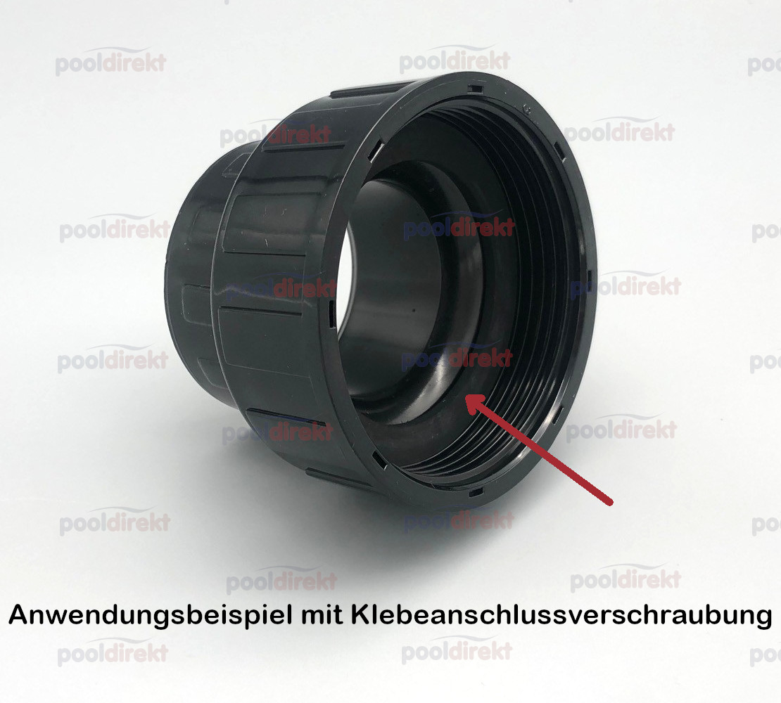 Zum Abdichten zwischen Pumpe und Schwimmbad-Verrohrung. Die Flachdichtung wird zwischen Pumpe und Einlegeteil gelegt und mittels Überwurfmutter eingequetscht.
