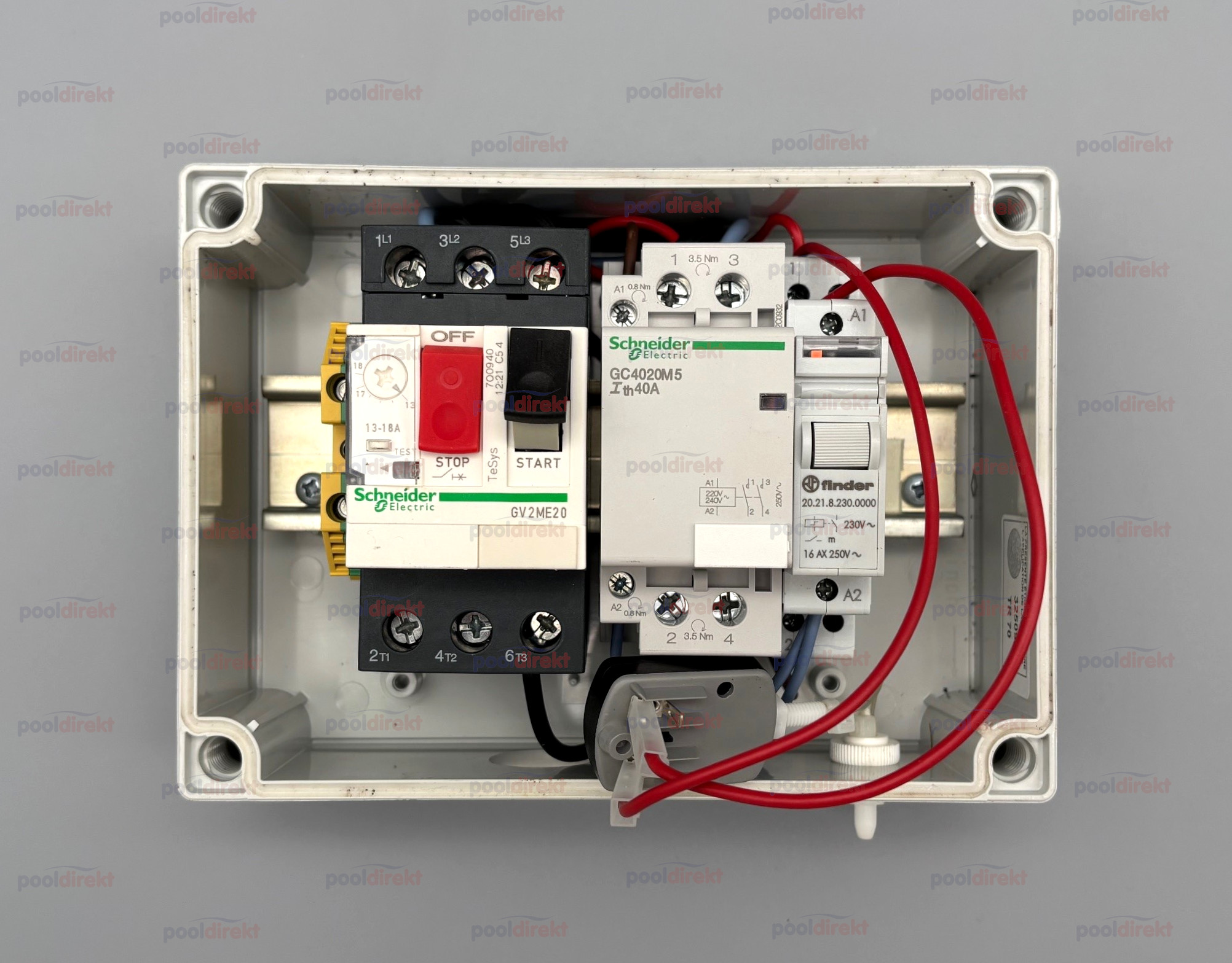 PN Schaltkasten zu Astral Gegenstromanlagen für Jet-Pumpe 2,2 kW 230 V, 10,0 - 16,0 Ampere, ohne Quetschverschraubungen.