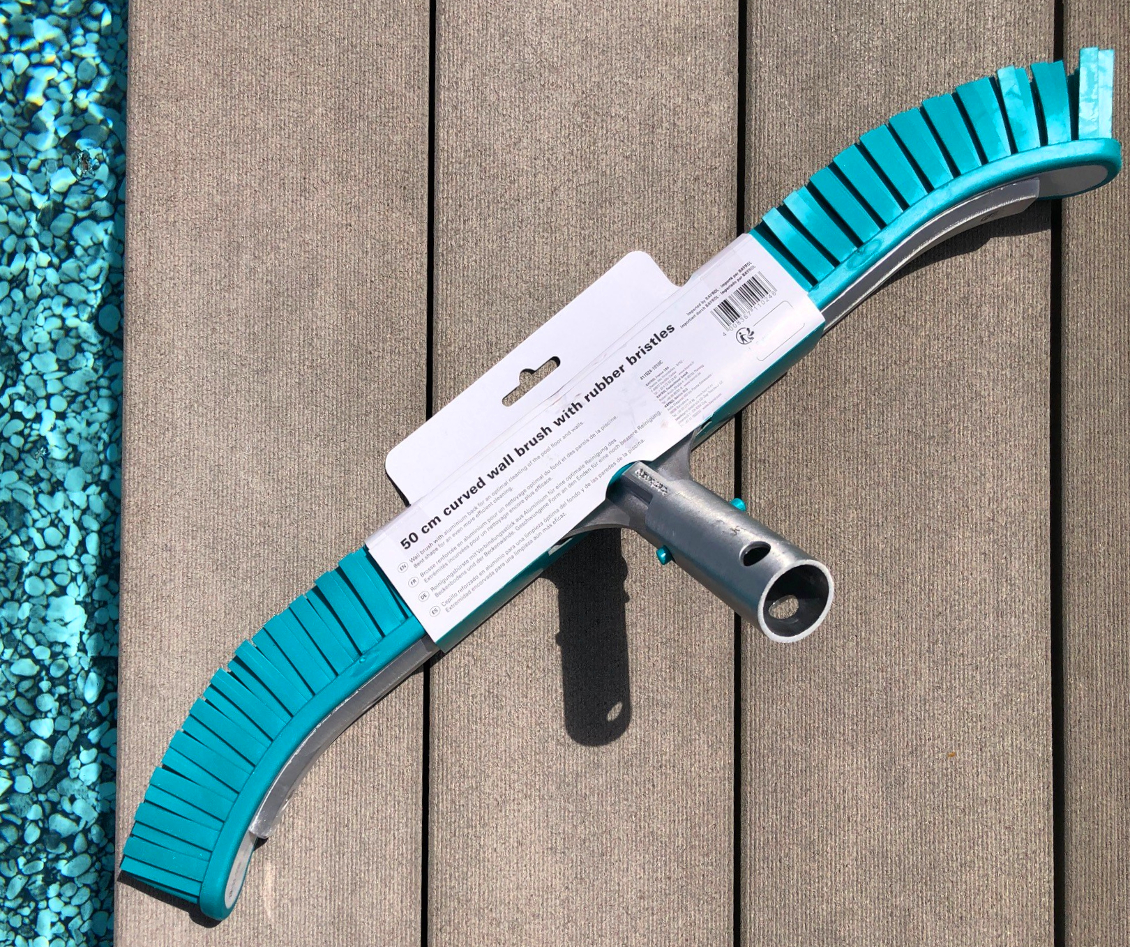 - Breite und sehr robuste mit Alu verstärkte Beckenbürste mit Gummiborsten