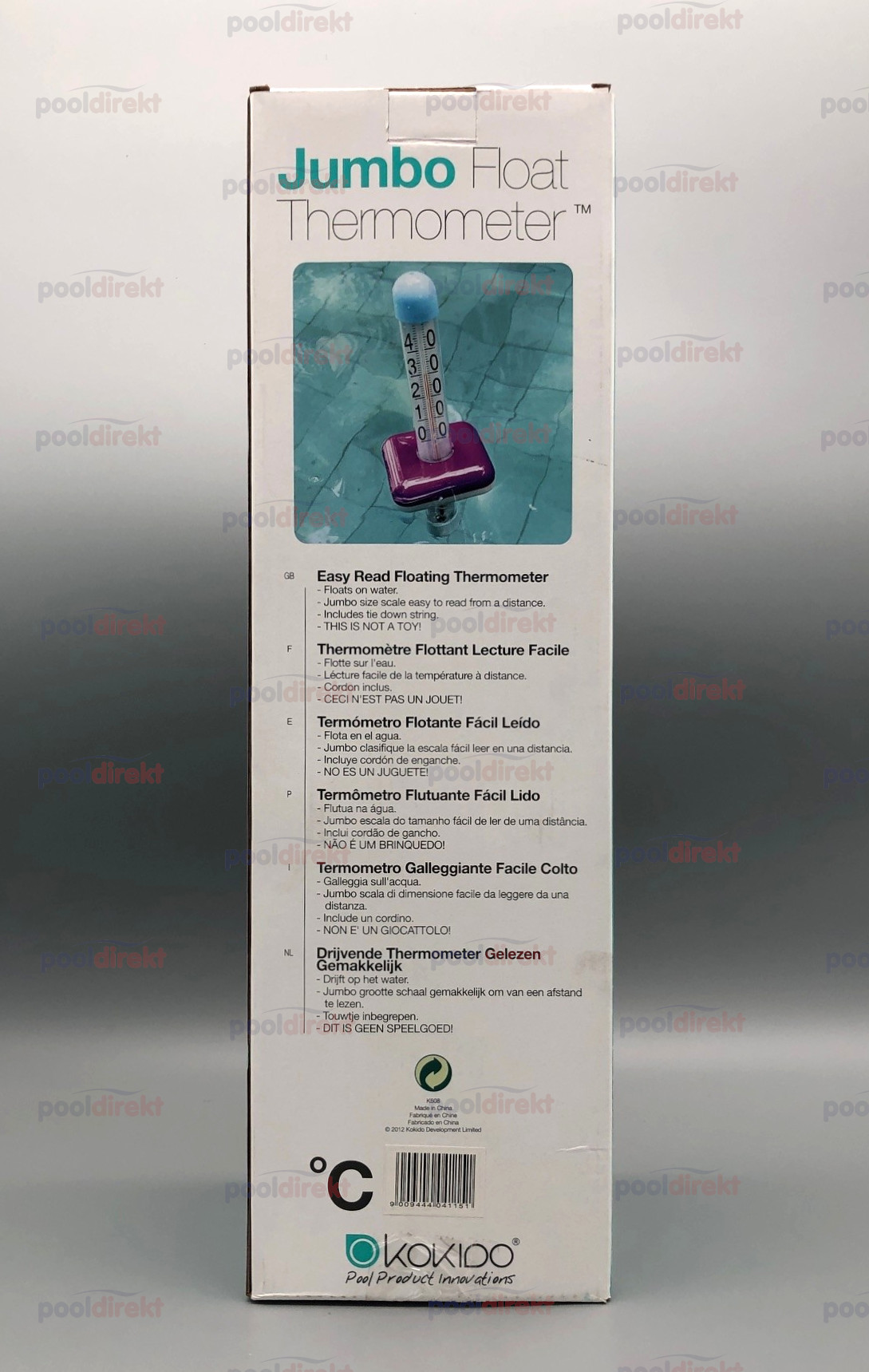 Thermometer-Boje mit großer Skala - leicht aus der Ferne abzulesen. Inkl. Kordel zum Fixieren. Für Salzwasser-Becken geeignet.