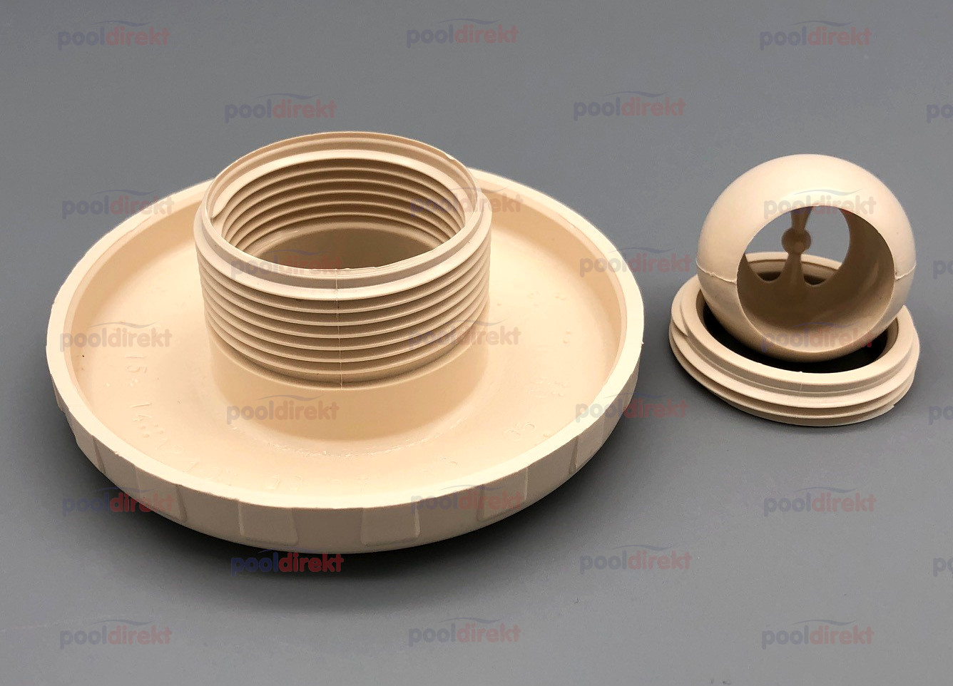 Verstellbare Kugel, zum Einschrauben in die Mauerdurchführung (siehe Zubehör).