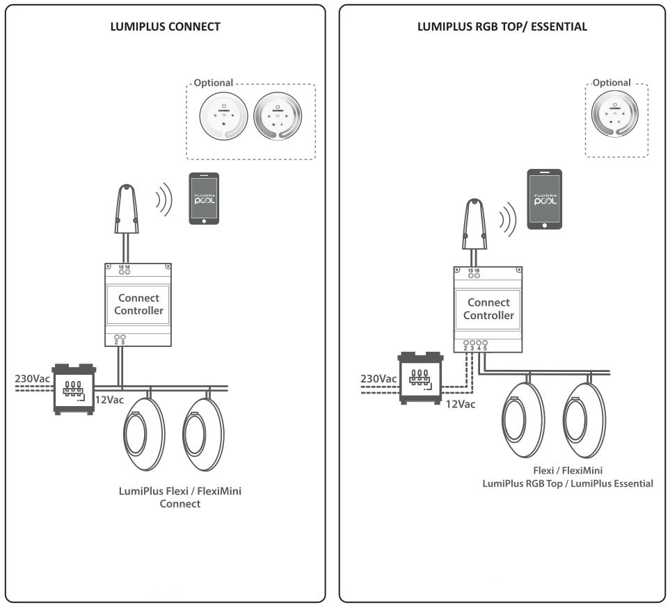 NEU seit 2025! Steuern Sie Ihre Poolscheinwerfer über die Fluidra Pool Handy-App oder Alexa.