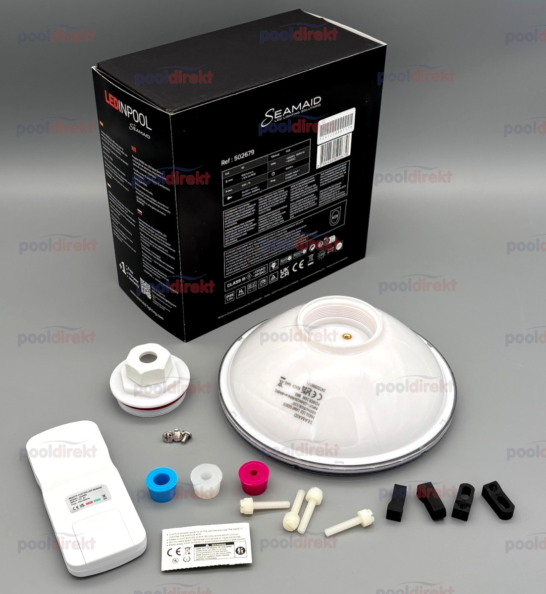 Renovierungs-Blende für Pool Scheinwerfer - ideal für Sanierungen. Mit der Renovierungs-Birne - siehe Zubehör, in weiß oder RGB erhältlich - können Sie ganz leicht Ihren alten Pool Scheinwerfer ersetzen. Mit den mitgelieferten, gummierten Befestigungshaken wird die Blende in der Nische befestigt. Es sind unterschiedliche Schraublöcher an der Blende für diverse, handelsübliche Scheinwerfer-Nischen angebracht, passend für folgende Hersteller: Hayward Kripsol Seriefrance BWT Pools Cofies (Hayward) Astral Weltico Die Anleitung finden Sie unter Downloads. Durchmesser der Blende: ca. 325 mm.