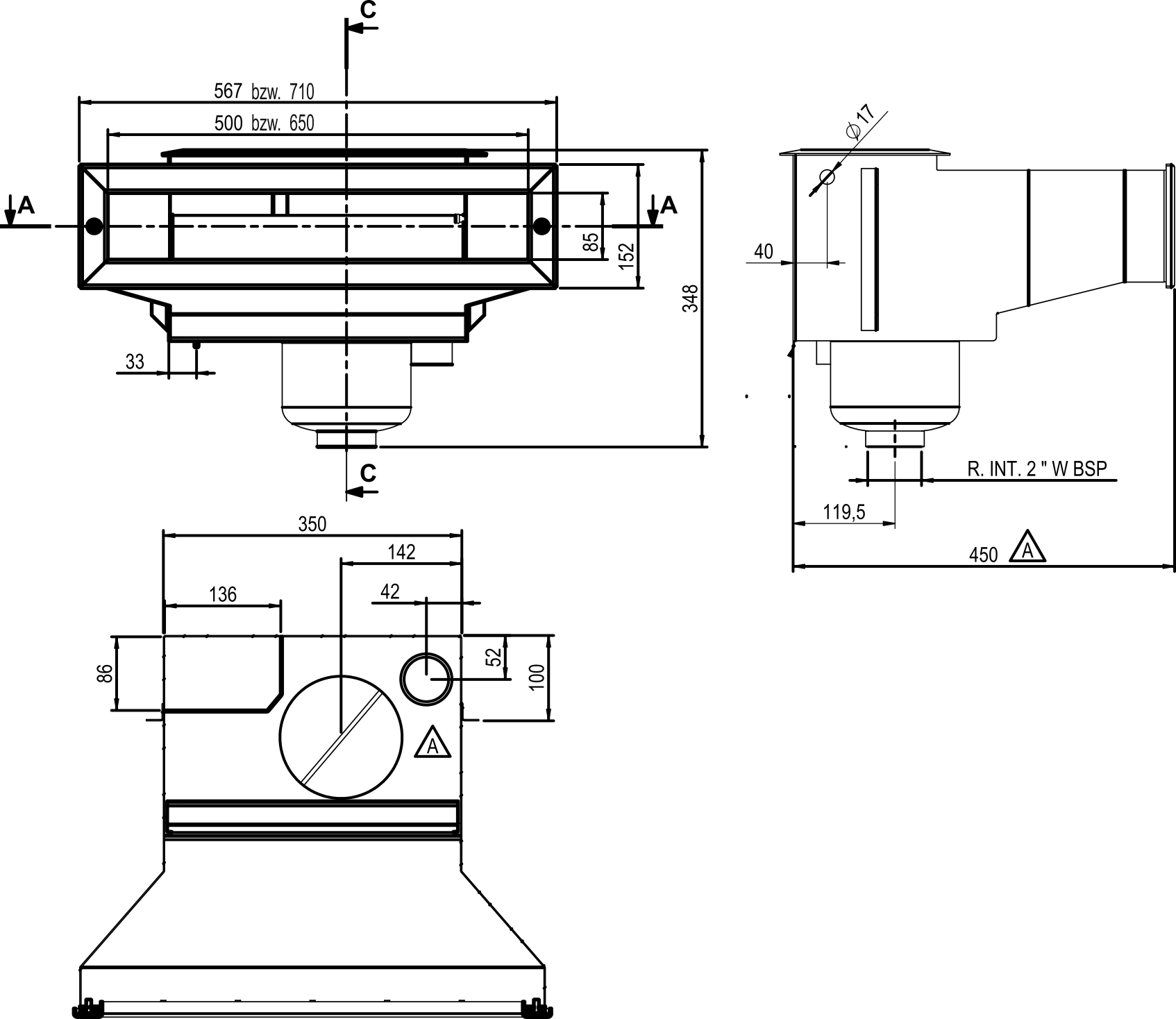 - Überlauf mit Klebeanschluss DA 50 nach unten