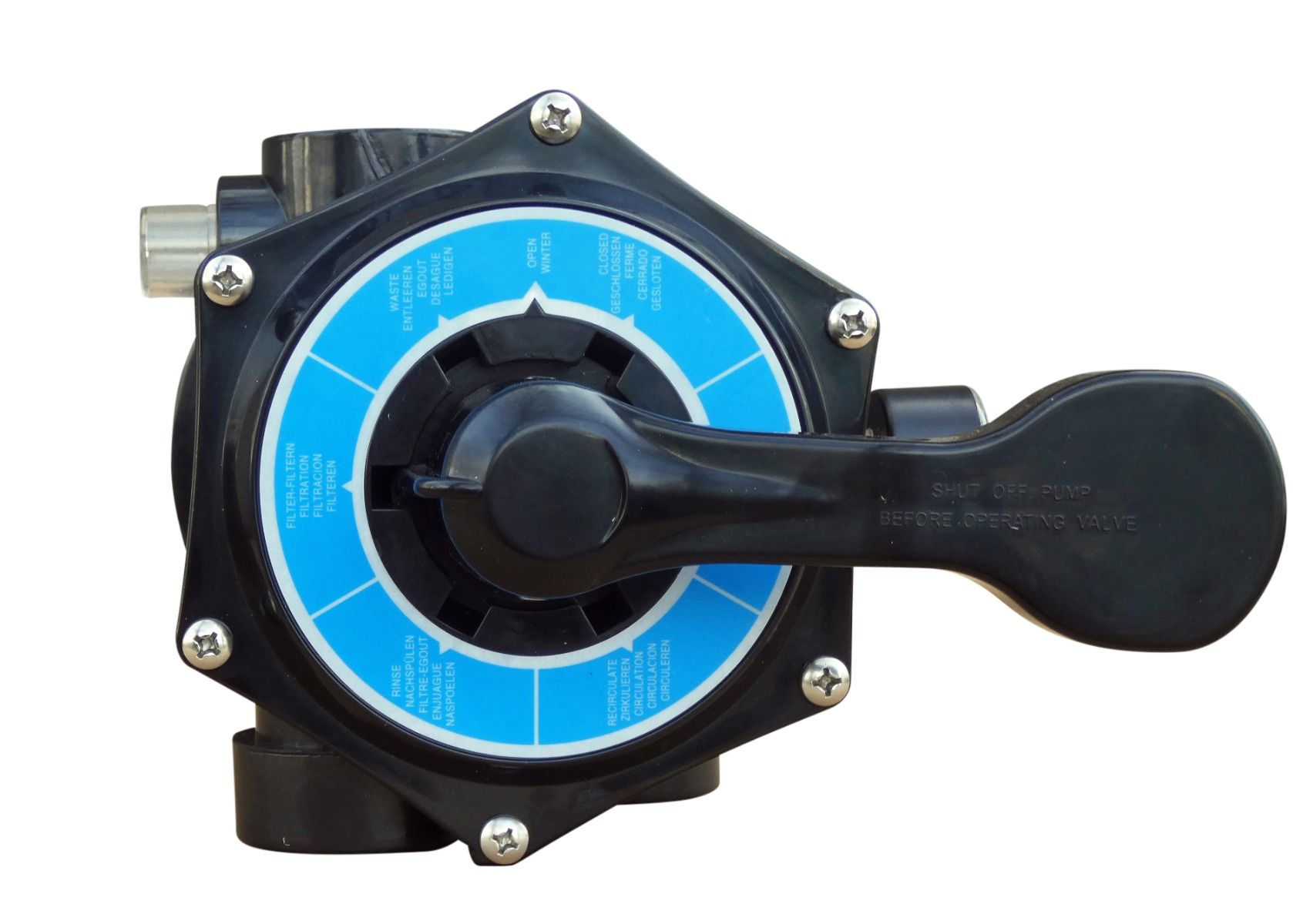 - 6-Wegeventil Top Mount ist passend für Filterkessel BASIC, CF, OKU, ECO und BALI (alle von OKU)