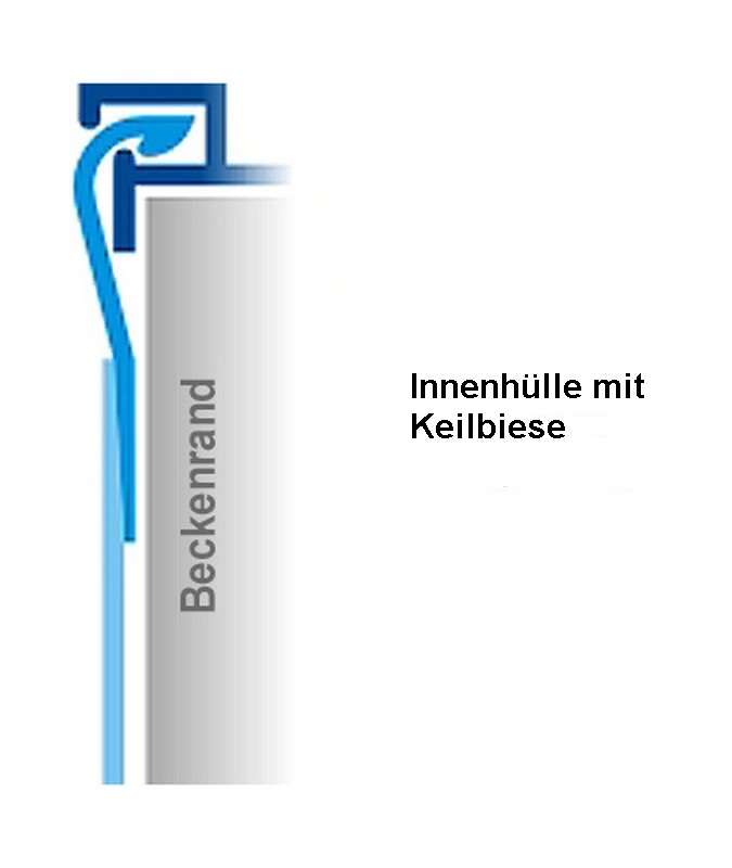 • mit Keilbiese, bei diesen Innenhüllen wird der Keil der Poolfolie in einem Befestigungsprofil an der Innenseite des Funktionshandlaufs verankert (siehe Foto).