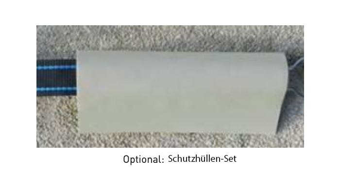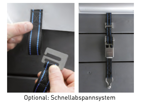 • Gurte und Edelstahl-Ratschen an den Breitseiten (einfach und schnell)