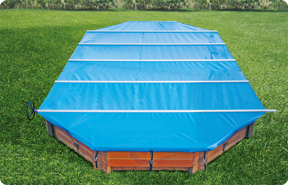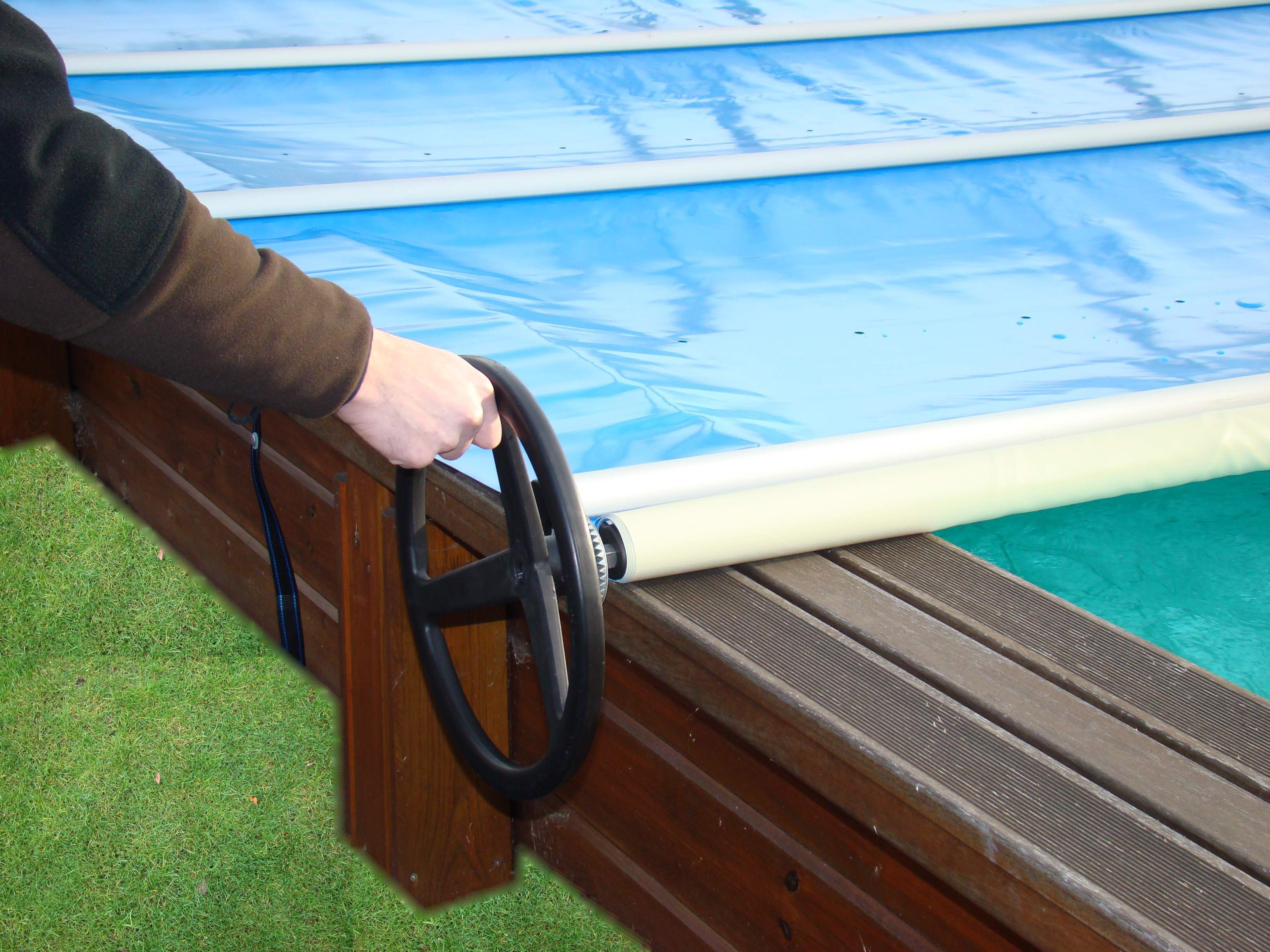 WALU POOL WOODSTAR ist ein spezielles Konzept für Oberflur-Becken aus Holz, ausgestattet mit einem raffinierten Aufrollsystem mittels Handrad!