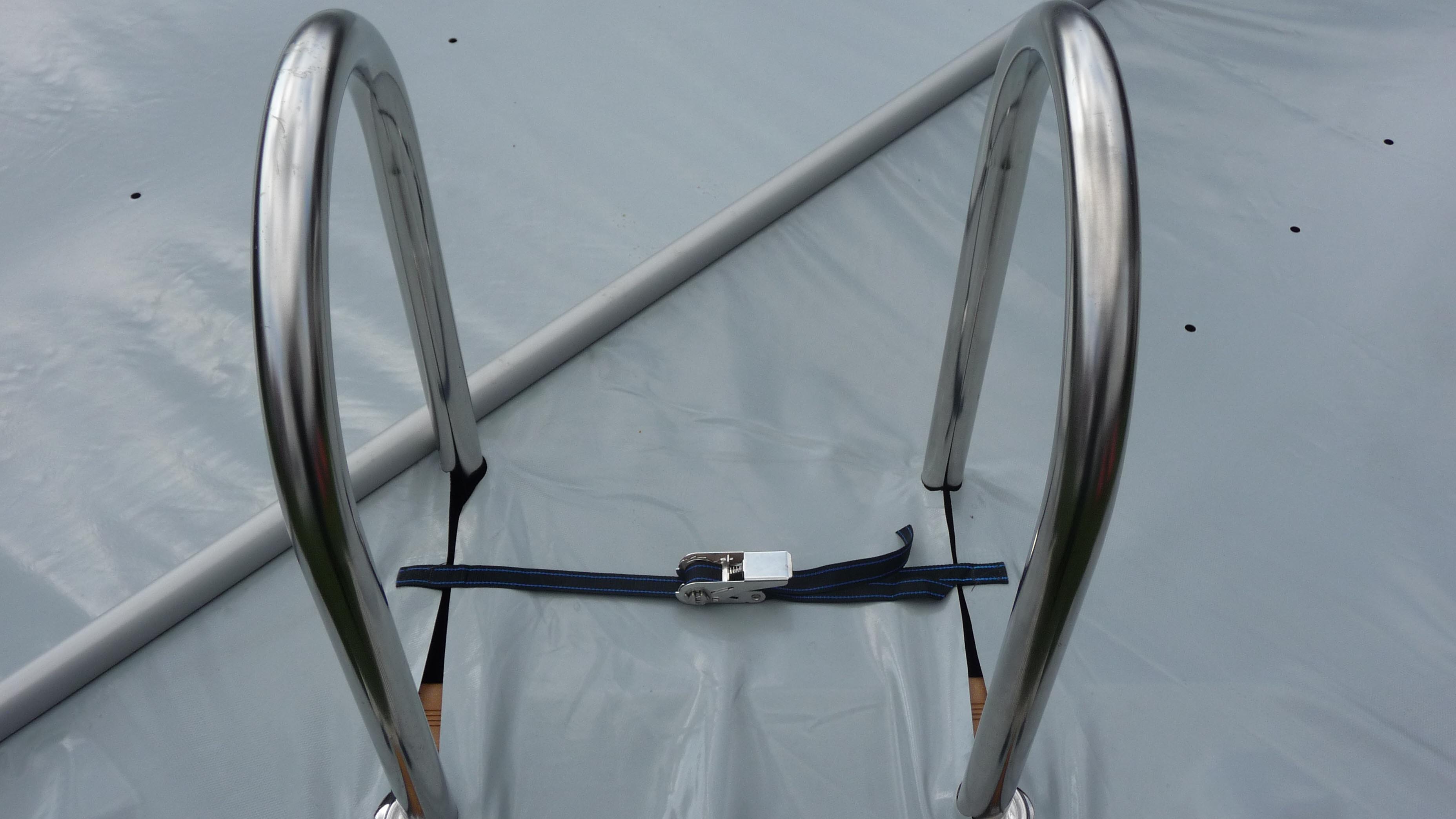 • Verankerung der Abdeckung an den Beckenwänden mit Edelstahl-Haken