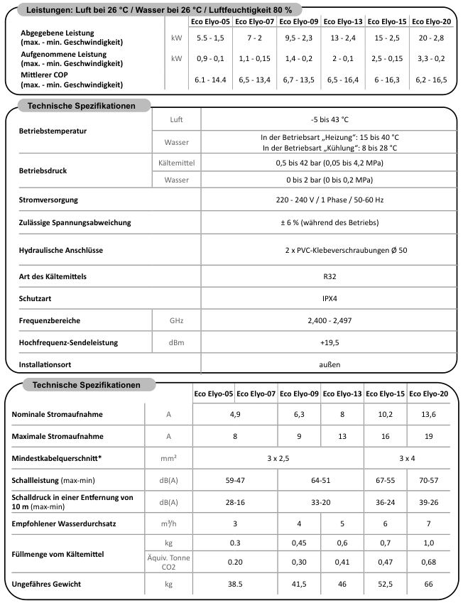 | Leistungsaufnahme (24° Aussen/26° Wasser): | 0,15 -1,1 kW |