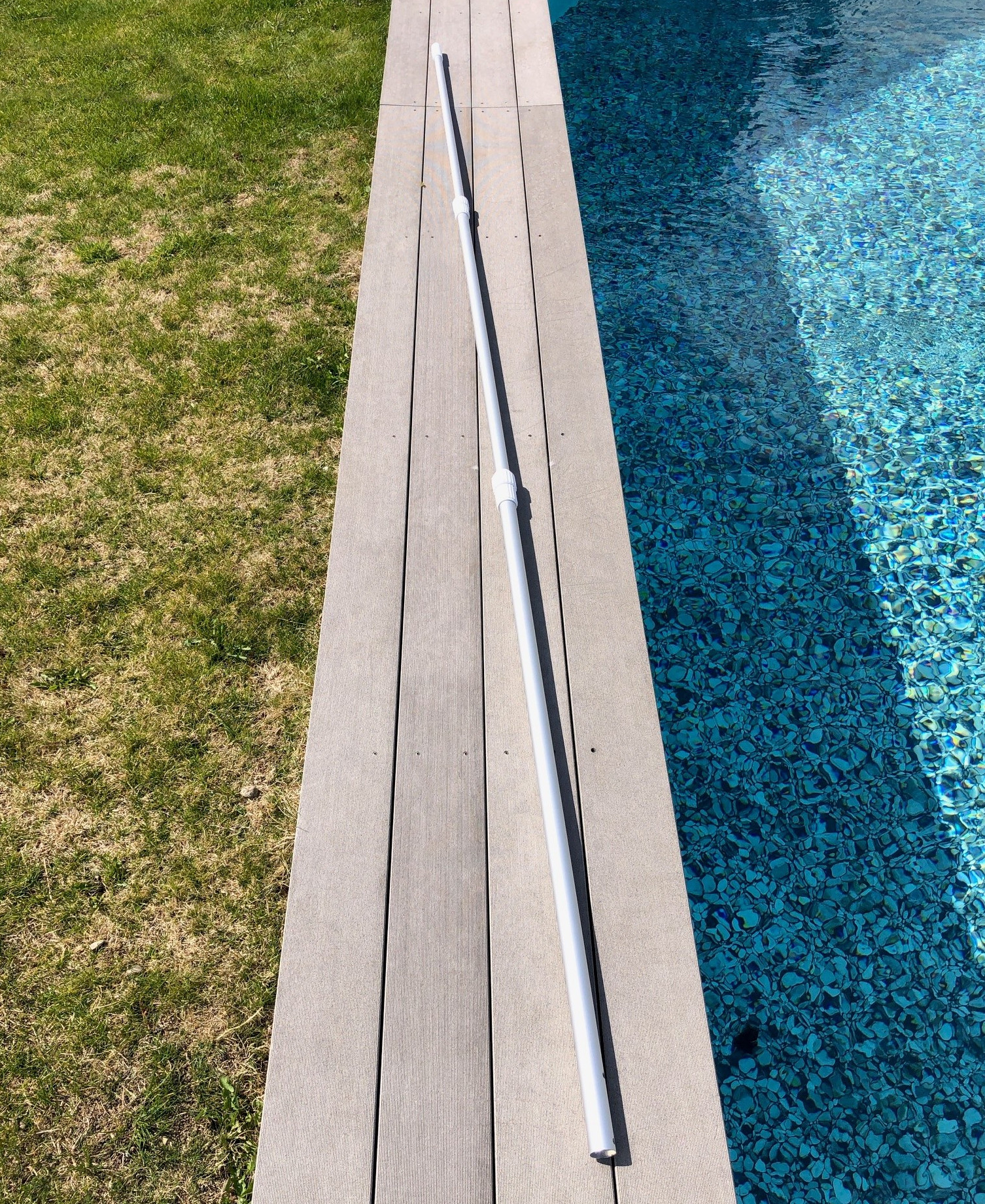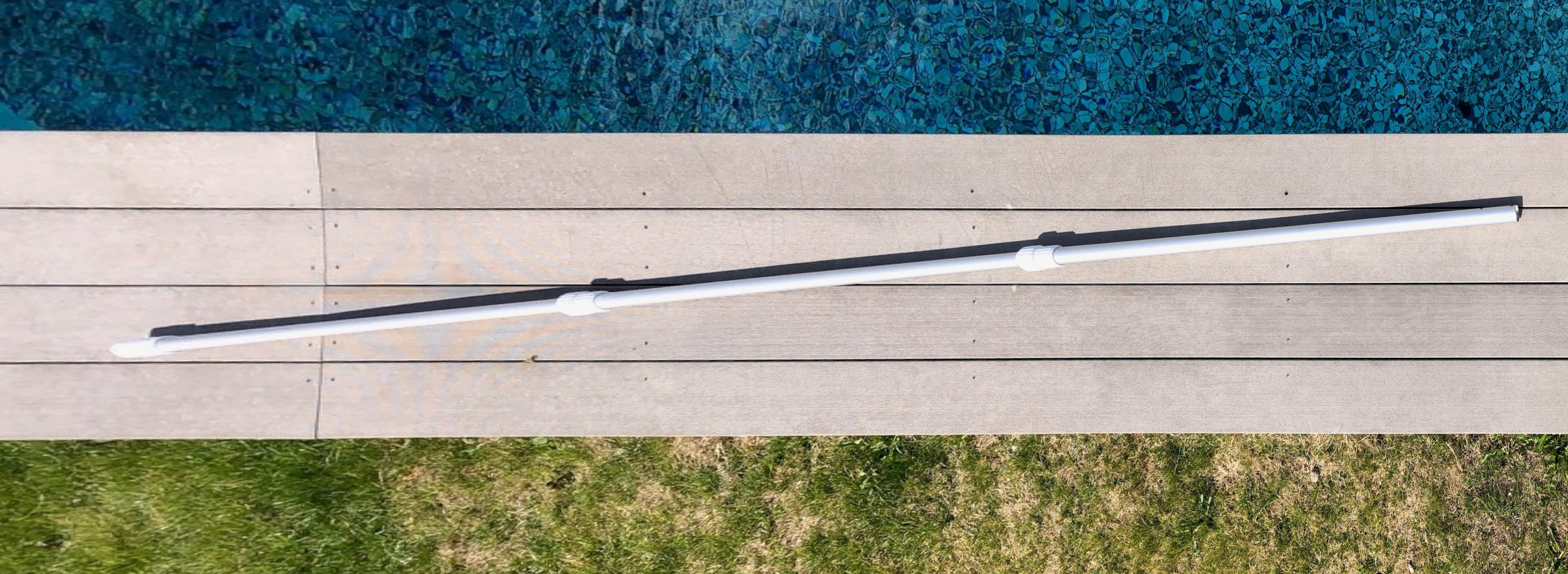 PraktischPool’GomXL® ist mit einem Universalaufsatz für Teleskopstäbe ausgestattet. Mit drei Winkeleinstellungen erreichen Sie mühelos und in aufrechter Haltung den Boden, die Wände und die Wasserkante. Der Aluminiumschaft besteht aus Polyamid und stark verdichtetem PVC und garantiert Ihnen höchste Stabilität.