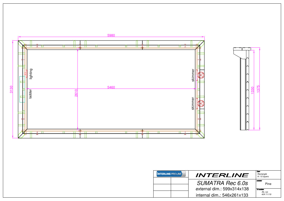 • Inneres Beckenmass: 5460 x 2610 mm