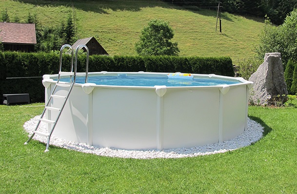 Diese Pools sind eine großartige Option für jede Altersgruppe. Sie bestehen aus einer Stahl- oder Aluminiumwand, Harz- oder Metallpfosten und einer oberen Kante zur Unterstützung, einer Folienauskleidung und einem Pumpen- und Filtersystem. Sie haben eine runde oder ovale Form und variieren in der Größe von 3 bis ca. 10 Meter im Durchmesser. Die meisten dieser Pools sind zwischen 120 cm und 150 cm tief.