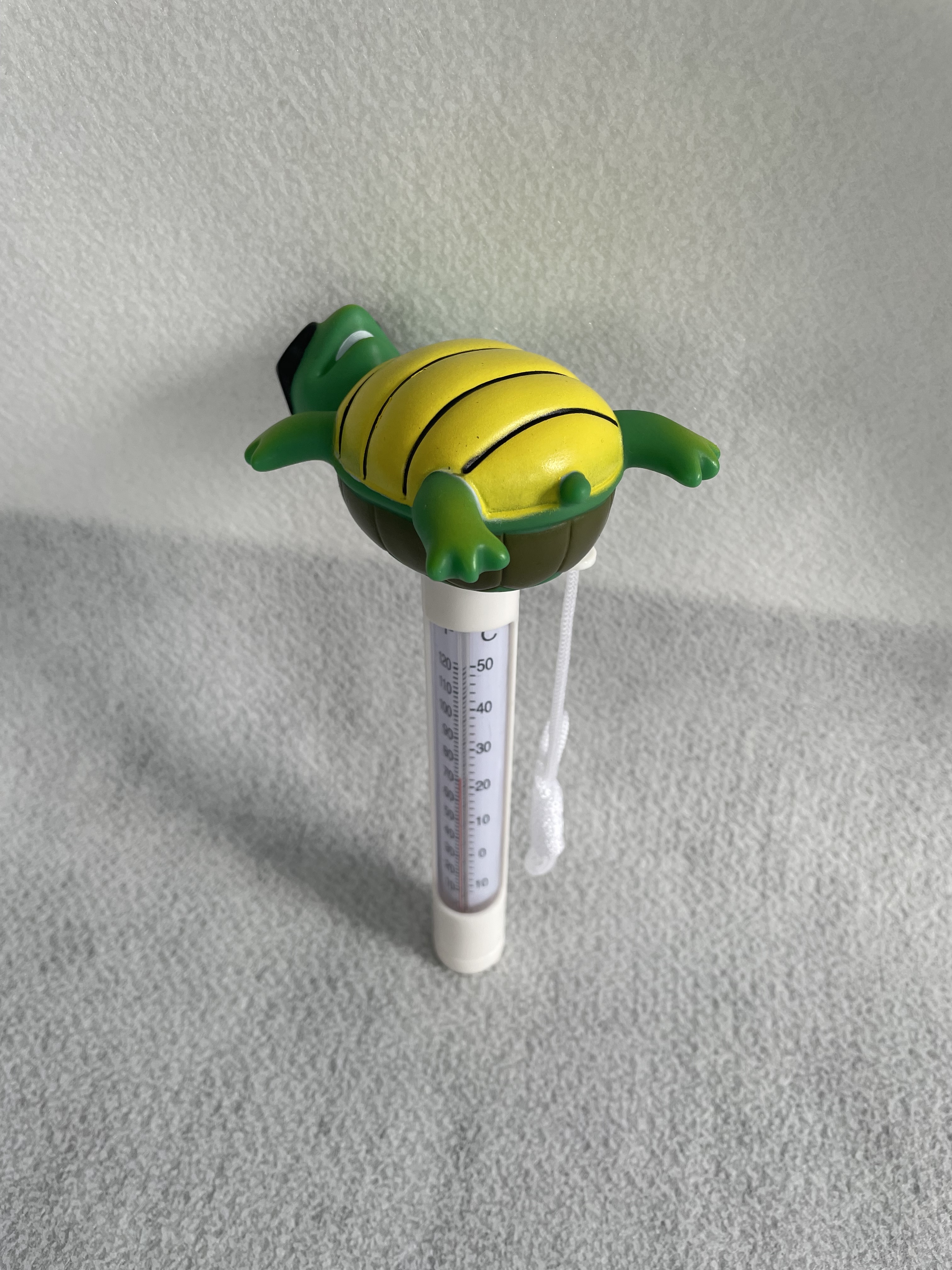 Pool-Thermometer mit Schildkröte inkl. Befestigungskordel, salzwassergeeignet.