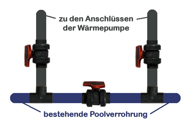 Set für den Anschluss einer Wärmepumpe über einen Bypass an die bestehende Verrohrung - siehe Skizze.
