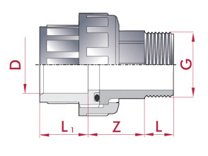 Eigenschaften "Verschraubung D 50 mm mit Außengewinde 1 1/2""