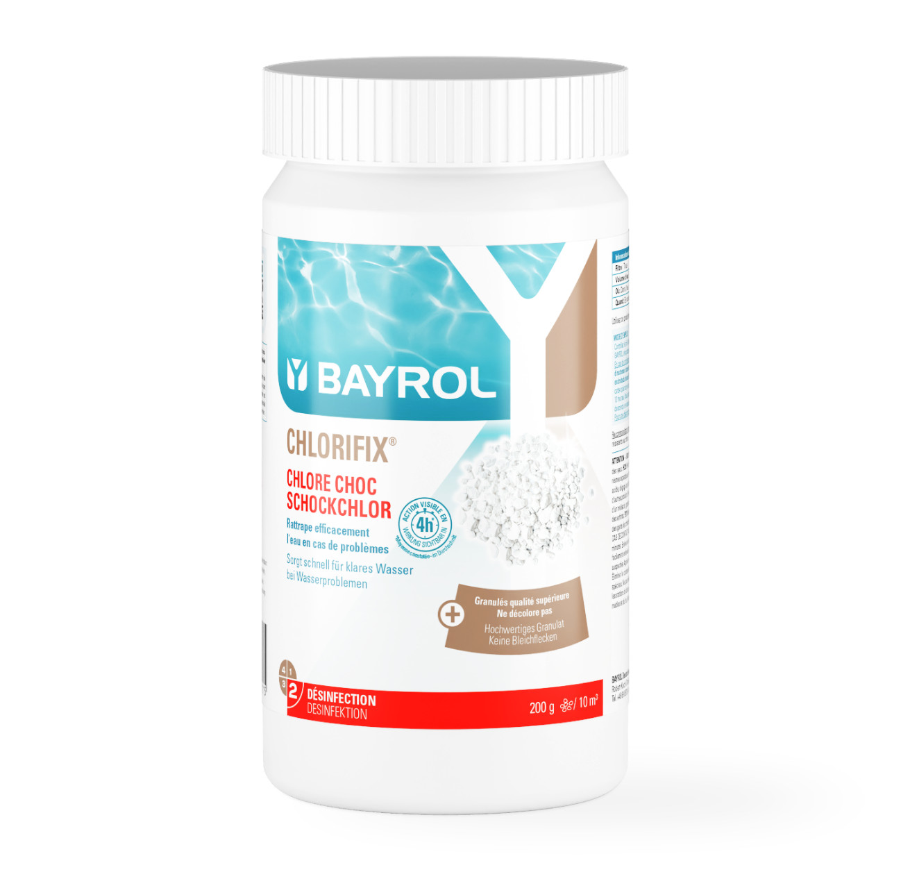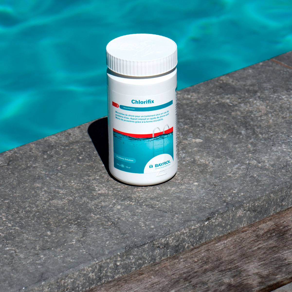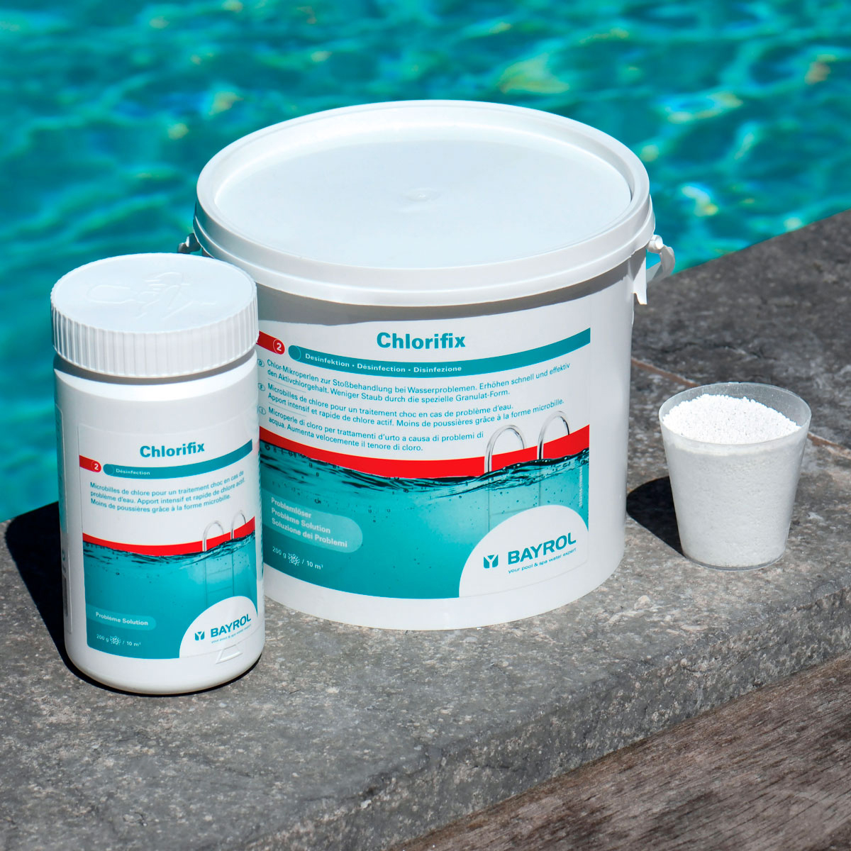Chlorifix® ist ein schnell lösliches Chlorgranulat zur Stoßbehandlung bei Wasserproblemen wie trübes oder veralgtes Wasser und wird direkt ins Wasser dosiert.