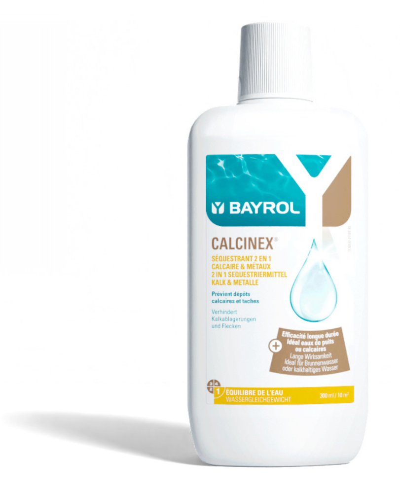 Calcinex® ist ein spezielles Flüssigmittel zur Verhinderung von unschönen und schwer entfernbaren Kalk- und Metallablagerungen an Beckenwänden und -böden, vor allem bei sehr hartem Wasser. Durch die spezielle Rezeptur ist Calcinex® auch in chlor-, brom- oder sauerstoffgepflegten Pools stabil und erhält seine volle Wirksamkeit.