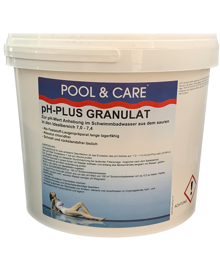 pH-Plus Granulat zur manuellen pH-Wert Anhebung des Schwimmbadwassers im Pool, Swim Spa oder Whirlpool aus dem sauren in den Idealbereich 7,0 - 7,4.