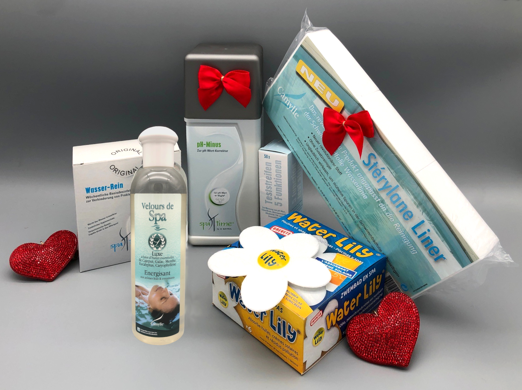 Sie möchten einen Whirlpoolbesitzer beschenken? Diese Geschenkbox beinhaltet Produkte, die für jeden Whirlpool verwendbar sind: